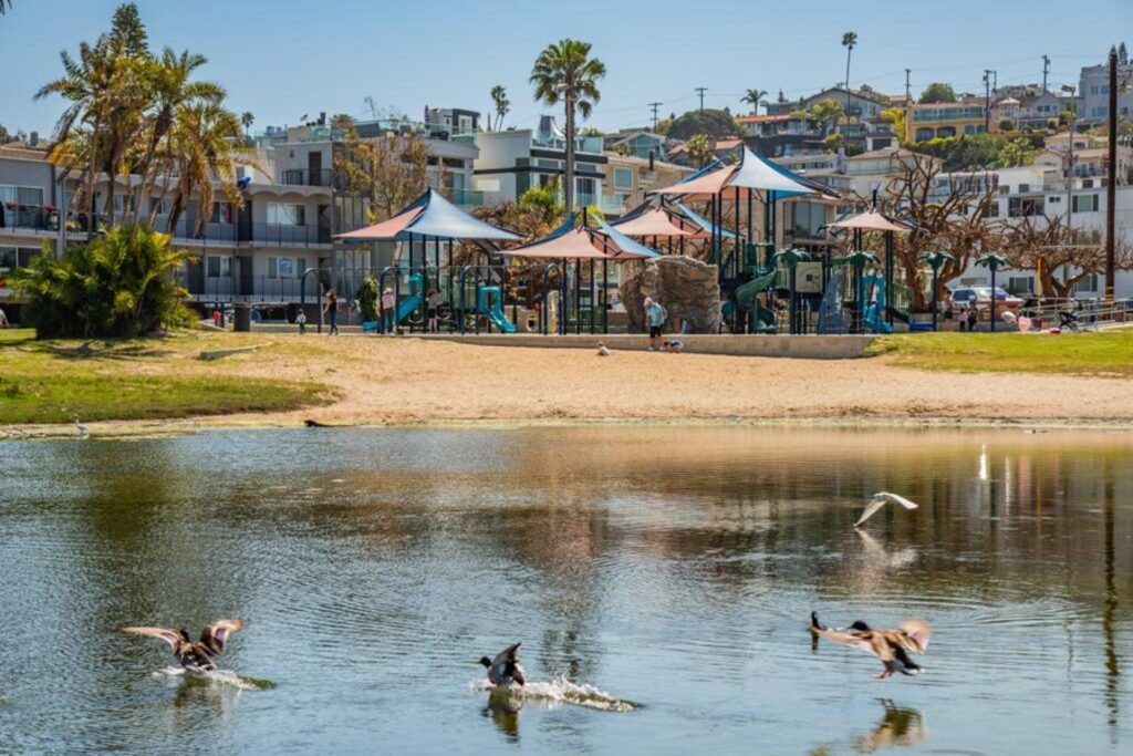 This Manhattan Beach park includes a duck-filled pond, playgrounds, and an outdoor amphitheater. Locals enjoy summer concerts, birthday parties, and community gatherings here.