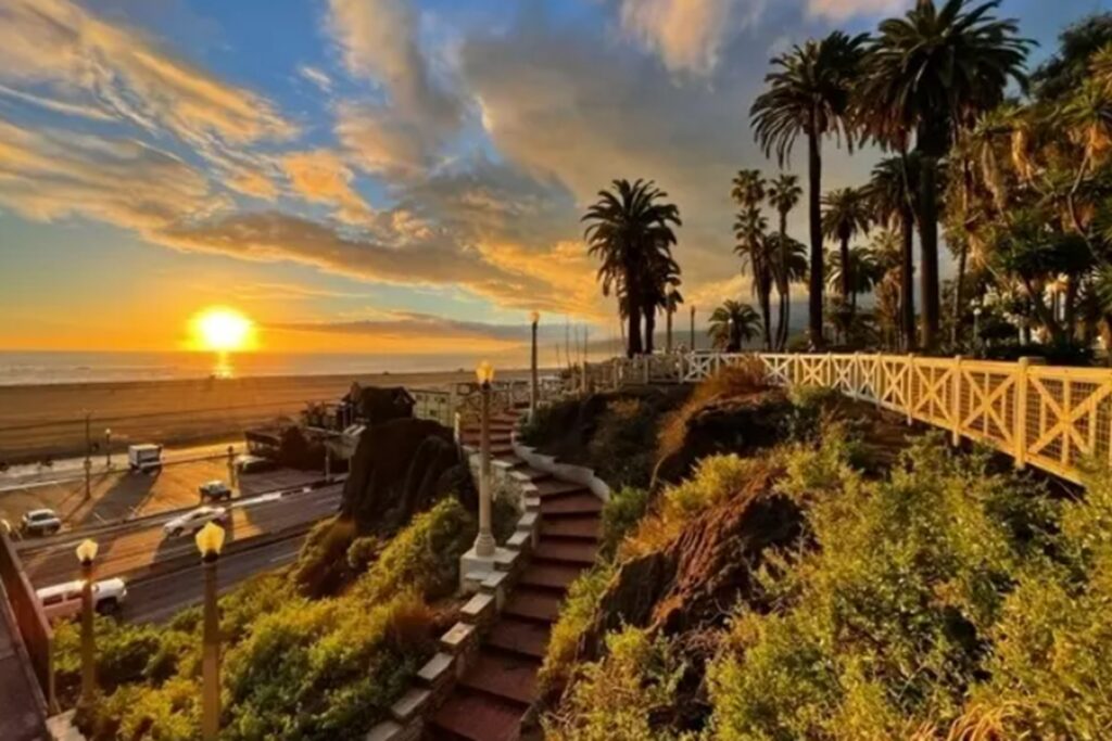 Overlooking the Pacific Coast Highway, this palm-lined park offers breathtaking views of the ocean and beach. It’s perfect for a romantic sunset walk, yoga, or people-watching along Ocean Avenue.